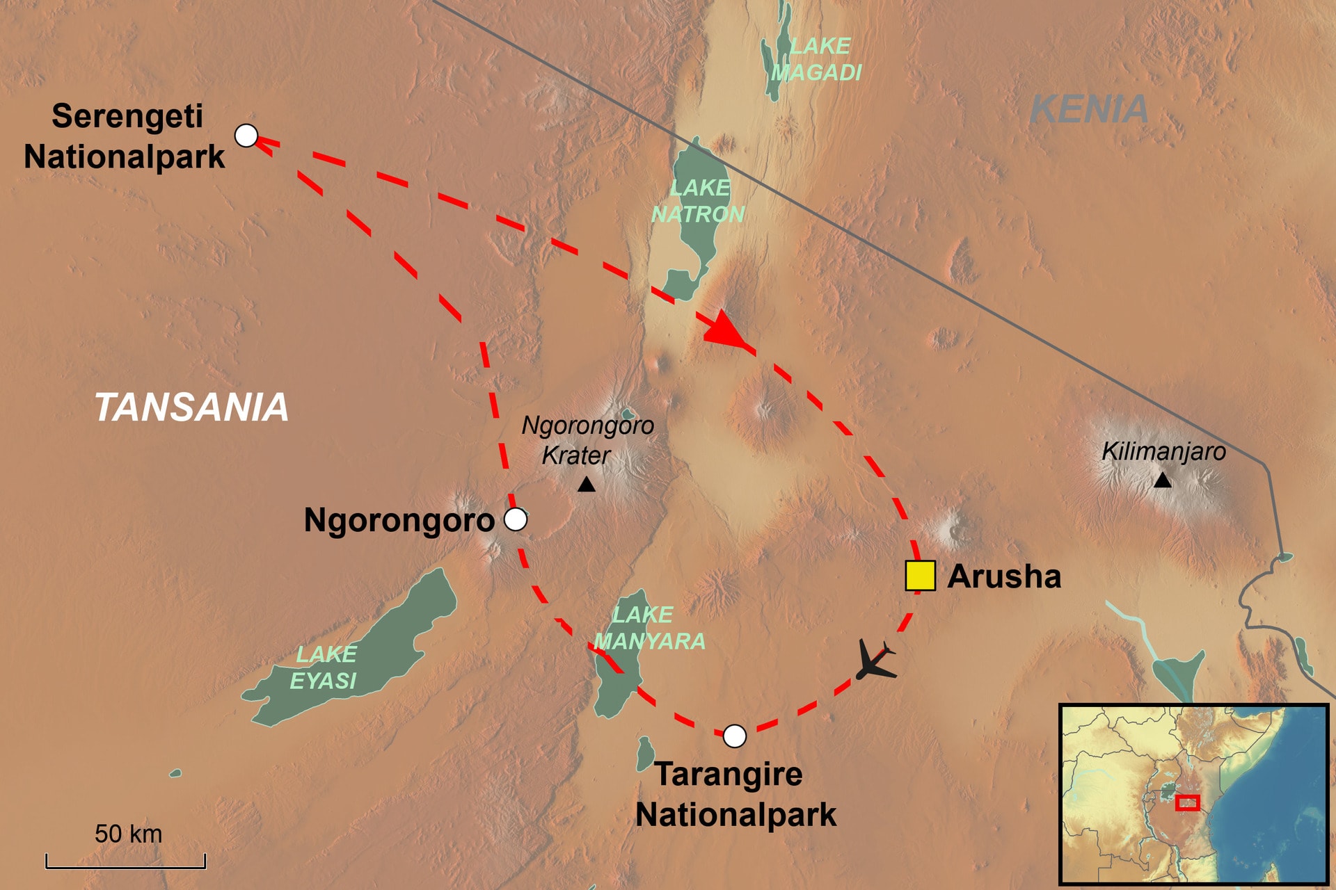 - zusätzliche gebuchte Aktivitäten und Ausflüge (z.B. Ballonsafari über die Serengeti)